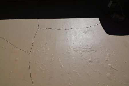 This is what many foundations at Westridge look like (cracks and bubbling from moisture in the foundations). In this case, paint and putty was used by Westridge to hide the foundation damage from tenants. This type of foundation damage allows moisture (and mold) to migrate up through these cracks where it makes its way inside living areas under flooring, inside walls, and so on. Leaks have also occurred because of foundation damage to in-slab plumbing.
